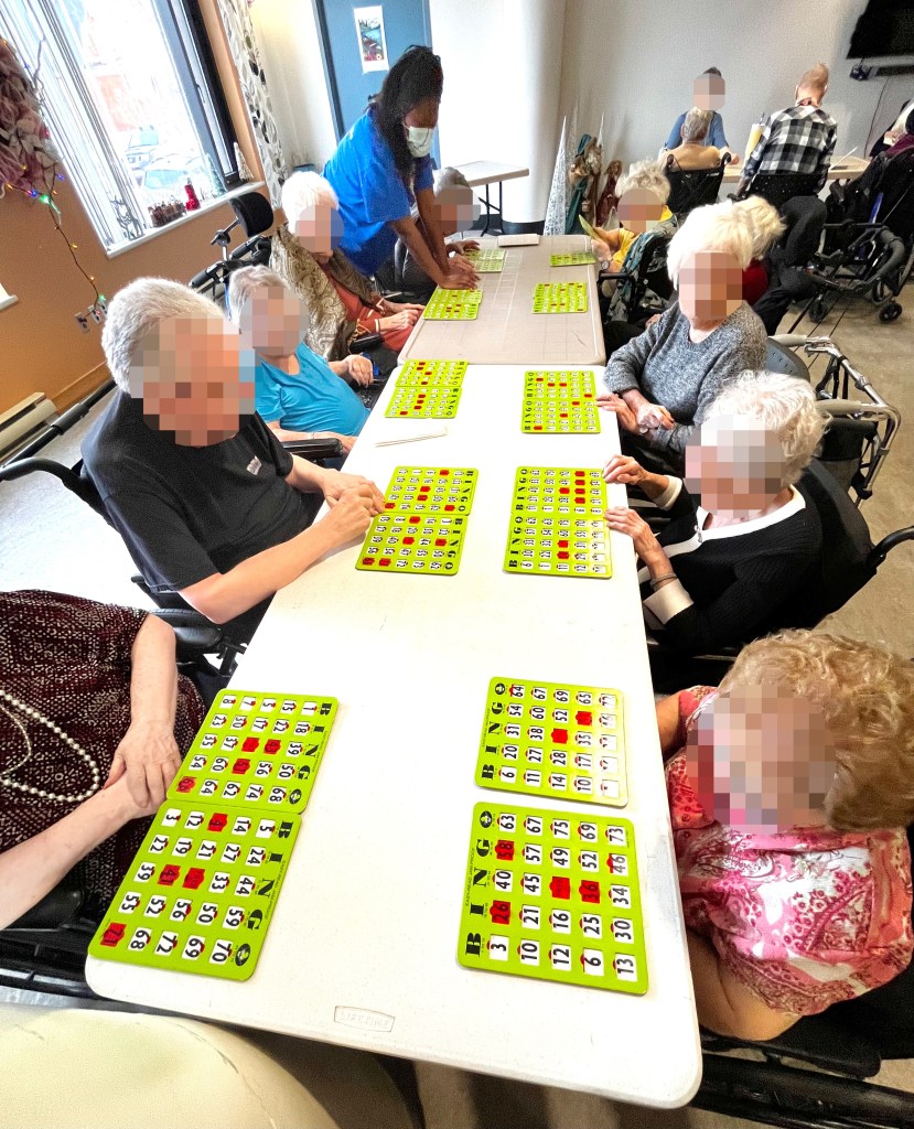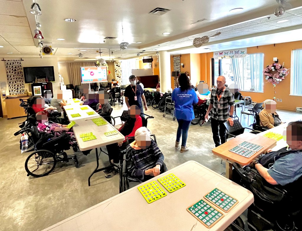 Trois fois par mois, nous partons à la rencontre de personnes riches en expérience et en histoire pour aider à la mise en place et au déroulement d’activités divertissantes. Lors de ces visites, nous échangeons avec les résidents, animons ou participons à des activités simples qui rejoignent tout le monde, comme des jeux